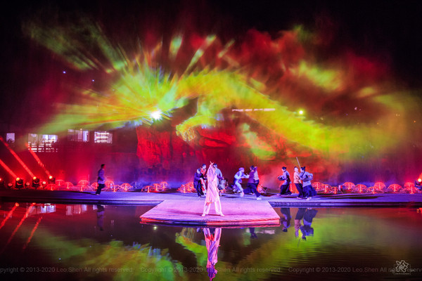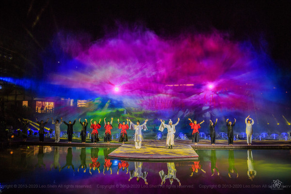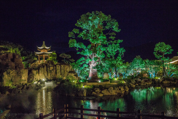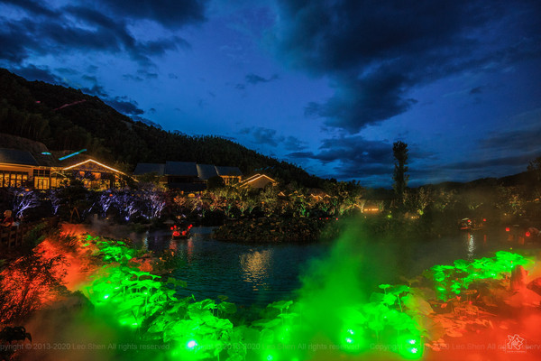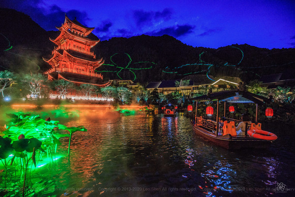 葛仙村度假区斥资3亿打造大型实景光影秀,玉清台、洗尘门、清幽涧、缘生池、太虚幻境等19个观赏点遍布仙村,月光、灯光与水系、建筑交相辉映,流光溢彩,极具视觉美感。