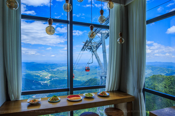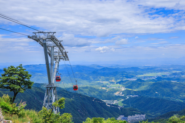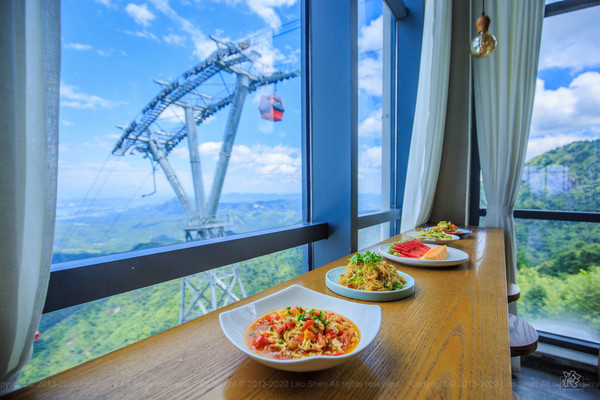 搭乘度假区的超豪华缆车登顶,可见清峻奇绝,群峰簇拥,若是在此观看日出云海,必然尤为壮观。