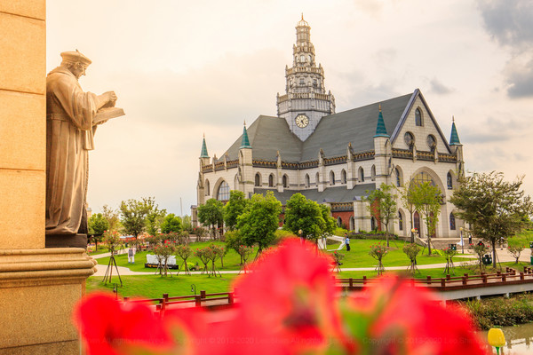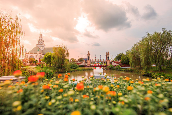 完全仿照荷兰圣劳伦斯教堂搭建的圣劳伦斯中心作为整个花海最标志性的景点也占据了整个景区最核心的位置,不论身在何处你都能看到这栋宏伟的建筑,而浓郁的欧式建筑本身可以让游客不出国门就能在此举办充满异国风情的婚礼,光是想想都会觉得很浪漫吧。