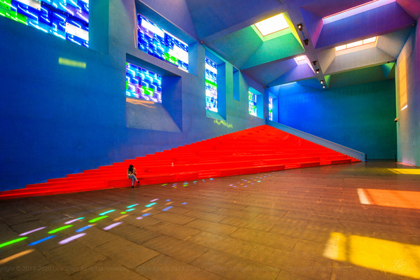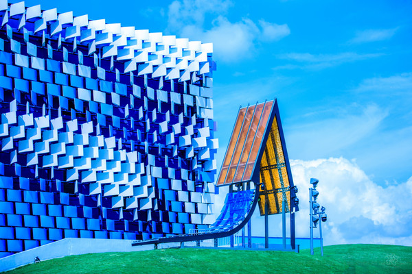 它本身就是一个建筑艺术空间和光影空间,外墙上万个个幻彩金属板,随着光线的偏转,整个剧照的外壁,犹如穿上了五彩霞衣一般令人为之心动。