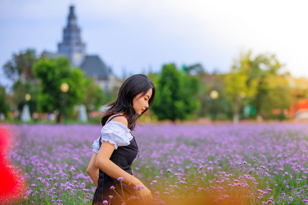 在花海中随处可见前来景区拍摄婚纱、情侣照的游客,而园中的一些风车、教堂等欧式建筑也彰显出别样的异域风情。