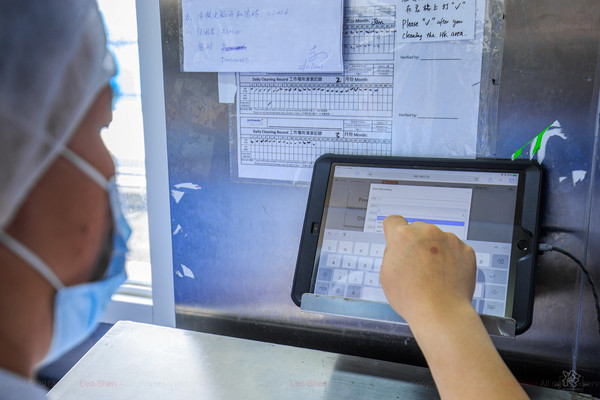 进入食品区后首先需要洗手,不同于以往的水温,这里水温相对会高很多,一定程度上更有利于清洗手部,随后进入的消毒舱会对每一位进入食品加工区的工作人员进行全身的消毒杀菌,才能进入食品储藏区、制作区等。