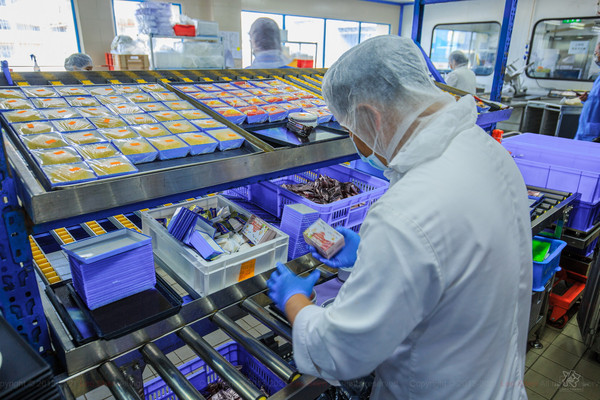 澳门航空的飞机餐就出自位于氹仔岛的澳门国际机场内,不论想要进入参观还是拍摄都需要非常严格的申请和检验流程,除了常规的澳门健康吗和提问测量登记,实名证件登记之外,随身所有的物品都需要单独安检,而进入食品烹饪区前还需要从上到下从里到外的穿上抗菌外套、头套、鞋套等等,可谓是相当的严谨。