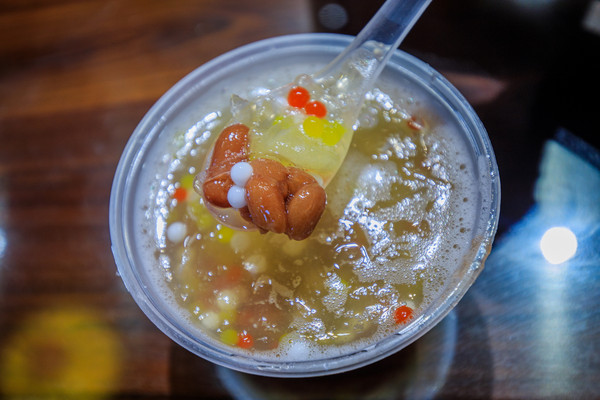 这里可能是最受当地人和游客欢迎的降温避暑美食,作为上过舌尖上的美食的百年传统老店,石花膏的原材料是石花草,口感也类似果冻。招牌四果汤,除了必点的石花条,还可从一二十种配料中自选四种配料,挑好配料,浇上蜂蜜,加点冰水,炎热的夏季来上一碗,绝对是消暑的不二之选.