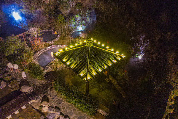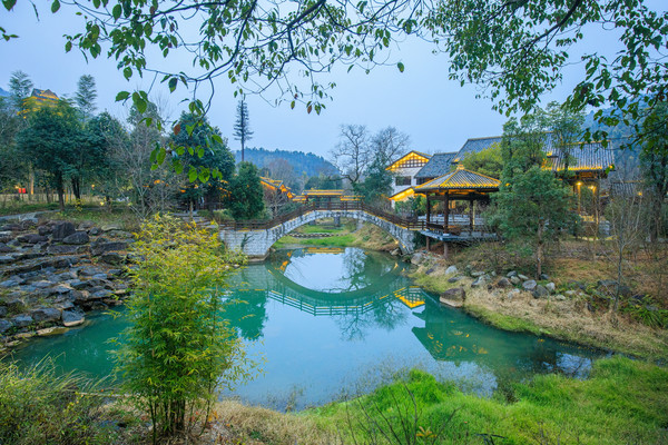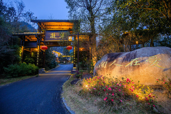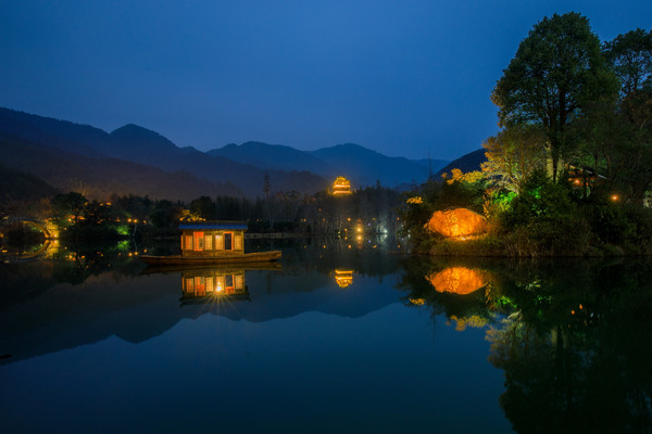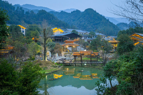 湖中小船独自横在江中,湖边翠竹、香樟、银杏、枫叶妆点着小道,一幅世外桃源的模样,行走在其中,呼吸着沁人心脾的空气,夜幕降临,在温泉池中泡泡,瞬间能忘记世俗的所有烦恼。