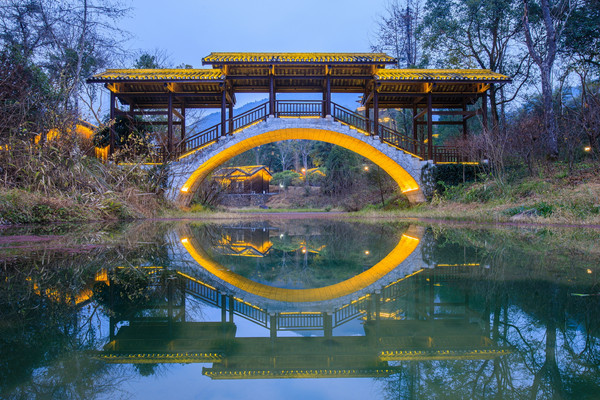 景区里设计让人感受到一股浓郁的文化气息。青山绿水之间点缀着古色古香的亭台楼阁,波光粼粼的湖面摇曳着七彩斑斓的喷泉。曲径通幽的步道边随处可见大家名流的墨宝,新国风书院典藏着数以千计的近、现代名家书画和著作。