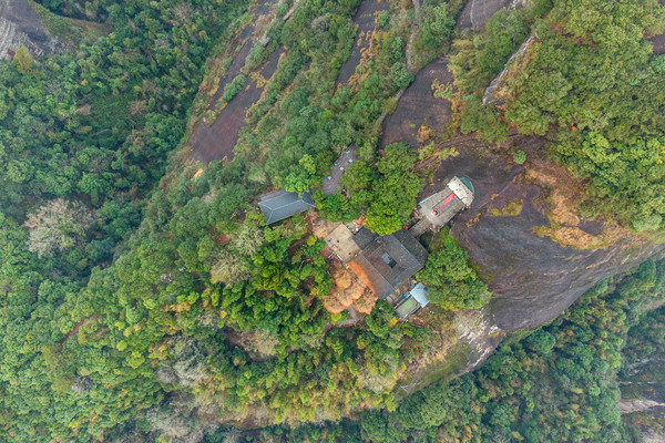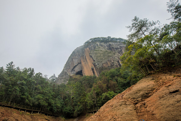 天柱峰的山腰间,岩石光秃,无草无树。而山巅之上,却有几十平方米的小山竹和灌木。站在山上,可见周围的飞来石、夜合山、晒鞋尖、小三峡、水上一线天、岸上一线天等胜景。