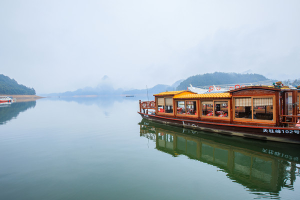 搭乘景区的游船,荡漾在碧波之上,向往天柱峰而去。