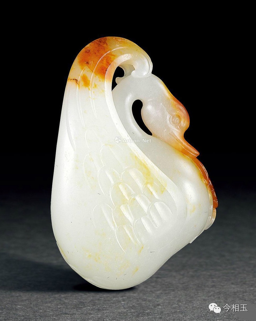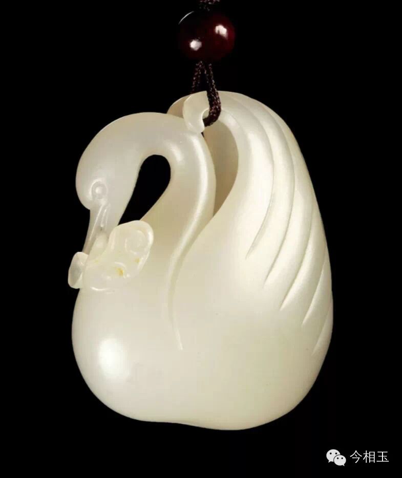 和田玉雕作品都是表达美好寓意的题材,有些是借助发音的谐音来表达。例如:“鹅”谐音是“我”,这样的作品中通常鹅都是在悠闲地嬉水、或体态优雅、或嘴里叼着灵芝,一副怡然自得、自在如意的景象,所以这样作品的寓意就是“我如意”,这样题材的作品会给佩戴者非常正面的心里暗示,能够起到提升正能量的作用。