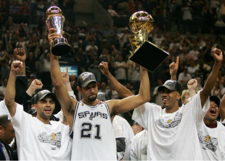 2005年NBA总决赛圣安东尼奥马刺队4-3底特律活塞队,夺得总冠军。蒂姆邓肯当选总决赛MVP!