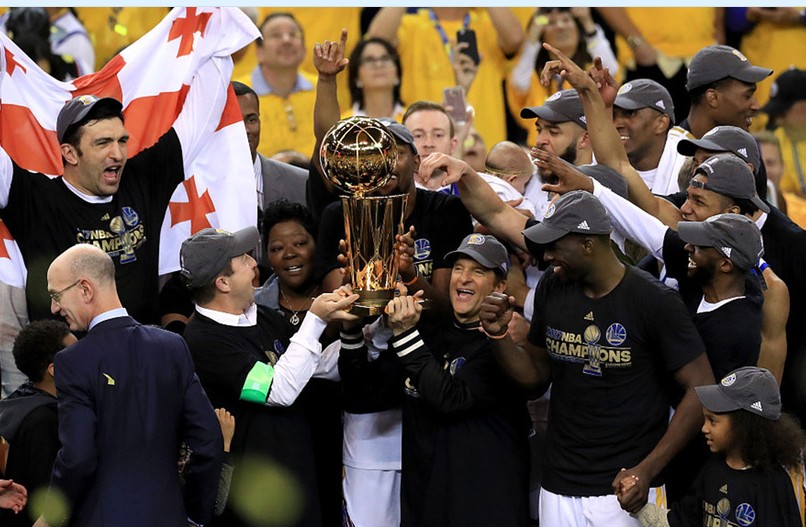 2017年NBA总决赛金州勇士队4-1克利夫兰骑士队,夺得总冠军。凯文杜兰特当选总决赛MVP!