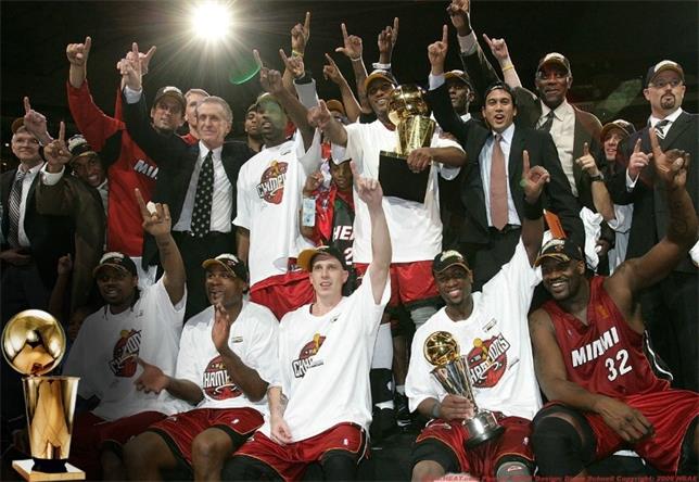 2006年NBA总决赛迈阿密热火队4-2达拉斯小牛队,夺得总冠军。德怀恩韦德当选总决赛MVP!