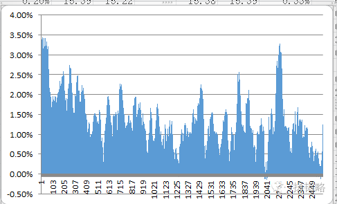 这个是按照市盈率从低到高做的排序。最左边的是市盈率最低的一组股票(绩优蓝筹股)今日的平均涨幅,3.0-3.5%,向右,市盈率逐渐增加,则涨幅也逐渐回落,平均涨幅逐渐下降到1%,甚至出现几组今日收盘下跌的股票。这种特征告诉我们,今天市场表现好的,就是绩优股,表现差的,就是垃圾股。