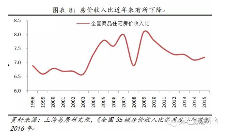 任泽平也用到了房价收入比的指标,如下图。可以明显看出,房价收入比已经持续下滑了近6年时间。这与1998-2003年的情况是有点像的。它都说明最近的房价上涨,其实是建立在持续多年的房价收入比下滑的基础上的。可惜,对这个原因,没有人去关注。