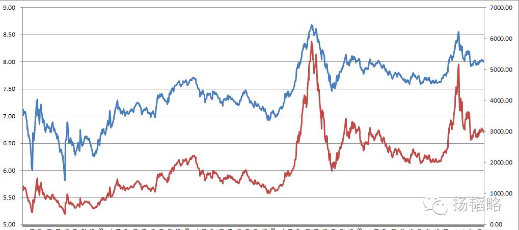 下图是1992年以来的上证指数与对数图: