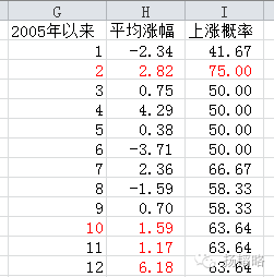 由此可以看出,过去11年,10月-12月的行情上涨概率略大一些。其中12月份出现了显著的正收益。2月仍是最佳的月份。