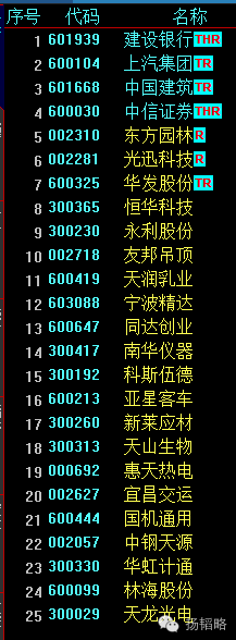 收盘后,按照下文逻辑选定的新的组合名单如下。仍保持25只股票,继续等权重计算,仍跟踪上证指数。