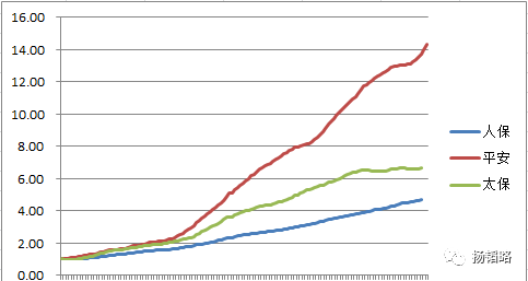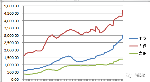 从保费增长趋势来看,三大保险公司(平安、太保、中国人寿)中增速最快的还是中国平安。