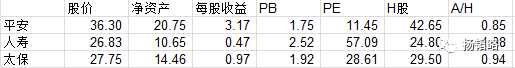 在估值方面,中国平安比人寿和太保要低。即便从AH股对比来看,平安A股的价格相当于H股的0.85倍(不考虑汇率),而人寿是1.08倍、太保是0.94倍。或者说,在香港的机构投资者看来,中国平安的股价应该是中国人寿的1.72倍,而A股的投资者认为,这个比值只有1.35倍。