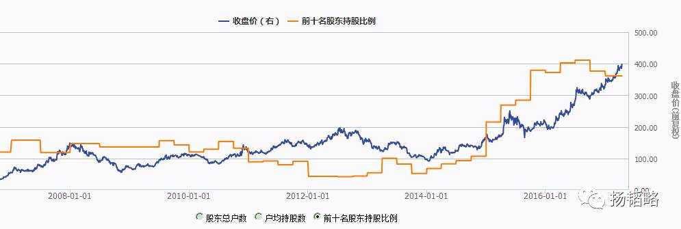 即,前十大股东的持股数量在不断创下历史新高。