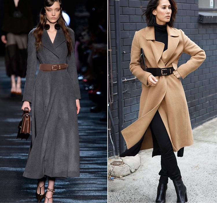要知道腰带不仅仅是用来控制裤子松紧的,腰带也可以是一件时尚单品,巧妙运用腰带完全可以提升腰线,让大衣被腰带分为两部分,拉长腿型。大衣加上宽腰带的修饰,露出腰线既不会显得这个冬天很臃肿,还显高显瘦又时髦。