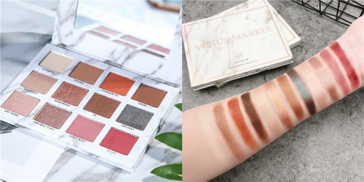 这款大理石眼影盘包装给我第一视感就是高大上,很精美的大理石纹,眼影盘采用的是纯天然植物萃取,含有6个带金闪,粉质细腻上色也很好,无论是晕染还是叠加,都有很强的表现力和显色效果。