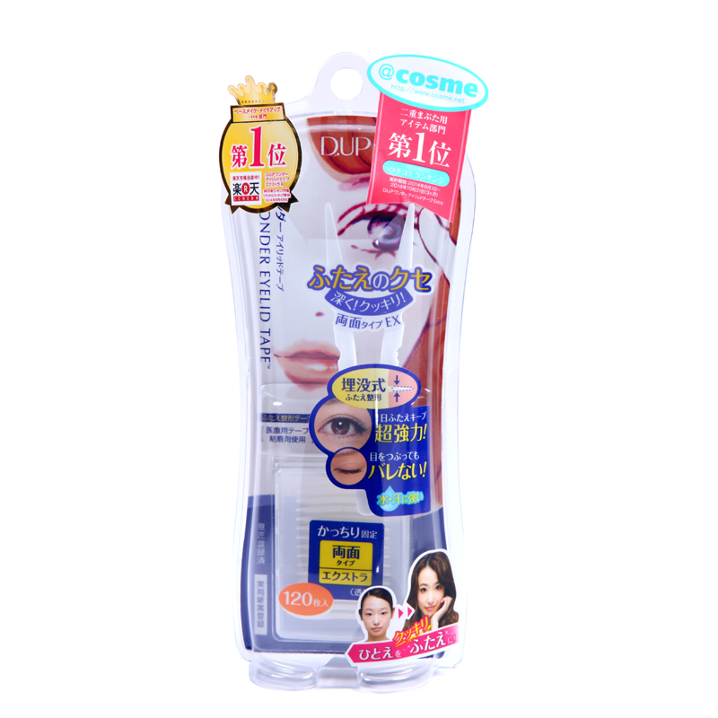 一般的双眼皮贴布都是一面的黏贴效果,但DUP家的这款双眼皮贴是采用胶带般式的双面可贴设计,贴布纤薄但是很强韧,几乎看不出痕迹的将胶带隐藏起来,也不易出现翻翘或脱落的现象,让双眼更加闪亮圆润。