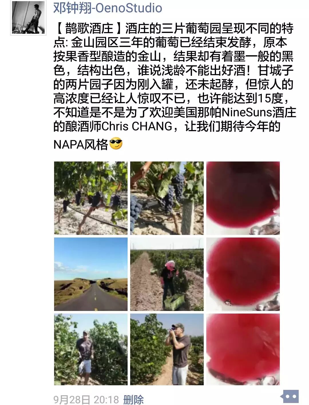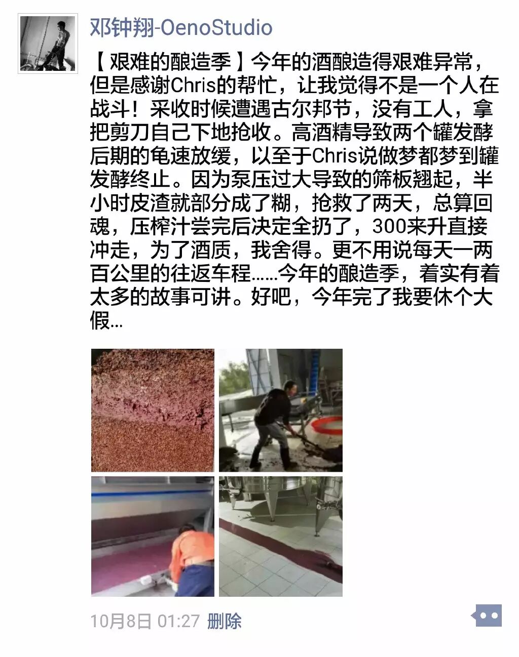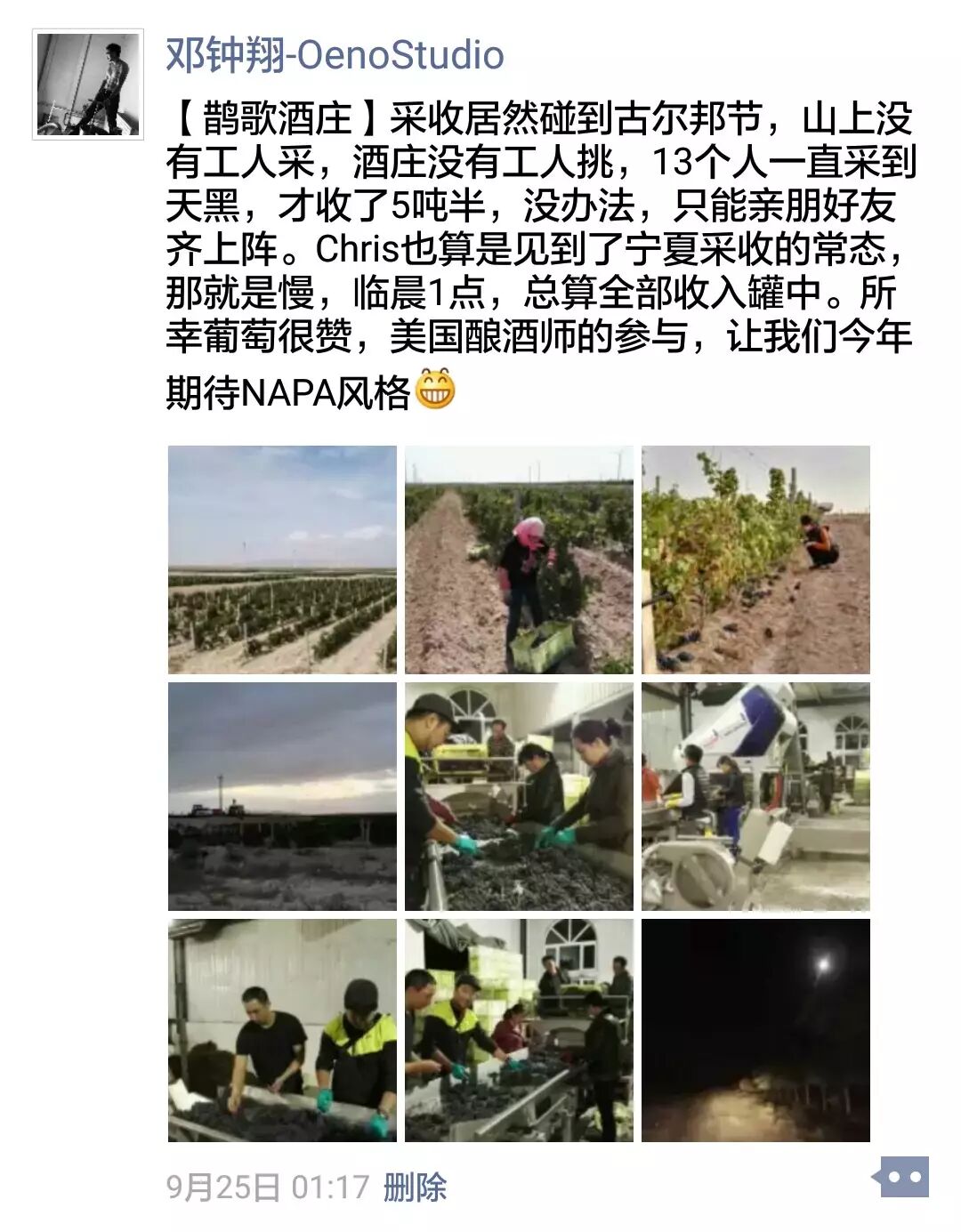 Chris和我说,纳帕产区,发酵终止是平常事,因为纳帕地区过高的酒精度,让发酵后期的酵母工作变得困难异常。纳帕的酒庄如果没有终止几罐,说明今年年份不好。这家伙的话,听着着实令人受用。怕我不信,他还举例,美国的传奇,啸鹰酒庄,有一年甚至70%的酒终止发酵,所以大可不必担心,就和家里的电脑系统一样,重启就好。今年他自己的酒庄也有三罐终止,美乐更是达到惊人的16度酒精度,送他去机场的时候,我说你回去搞定你那边,我搞定这边,放心好了。他说,我肯定放心,你是个好酿酒师,宁夏是个好地方,等着我回来,明年我们一起创个牌子出来。就像法国人和美国人搞出个Opus One,我们可以来个中美版的作品一号。我笑笑说,也许会更有名。
