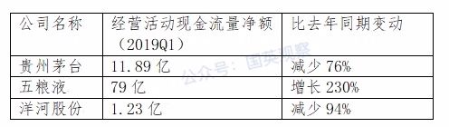 但是,与洋河股份不同,2019年第一季度,五粮液经营活动产生的现金流量净额约为79亿元,比起上年同期增长了230%。