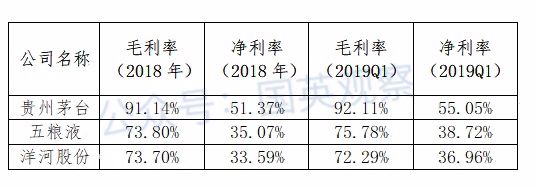 从2019年一季报披露的毛利率,净利率来看,洋河股份72.29%的毛利率,36.96%的净利率没有太大变动,而五粮液75.78%的毛利率和38.72%的净利率保持了对洋河股份微弱的“领先“优势。