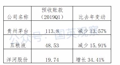 与此同时,2019年一季度,五粮液的预收款项为48.53亿元,与2018年年底的67.07亿元相比。下降了28%。