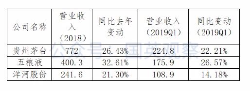 这一切源于五粮液迅猛的增长势头。2018年全年营收增长率和2019年一季度增长率,五粮液均大幅领先于洋河位列三强的榜首。由此可见,“底子“最差的洋河股份在体量劣势的基础上,增量同样占不到便宜。