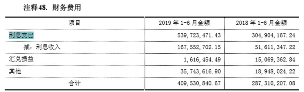结合公司在半年报中公布的财务费用,实际的利息支出高达多少?让人看不明白!