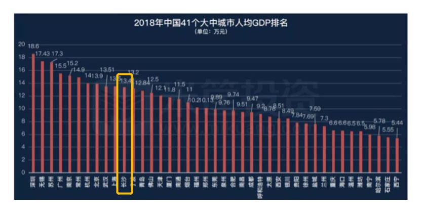 再看人均GDP,包括北上广深一线城市在内,2018年人均GDP,长沙位居第11位,为13.2万元。在中部城市中,排名第二,仅次于武汉(13.4万元),差距微乎其乎,将其余城市远远甩在身后。