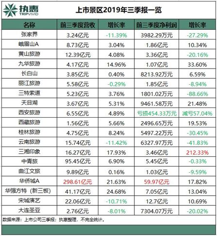 最典型的如我们所熟知的张家界,更是交出了前三季度营收下滑11.39%,利润下滑27.29%的成绩单,可谓“山穷水尽”的杰出代表。