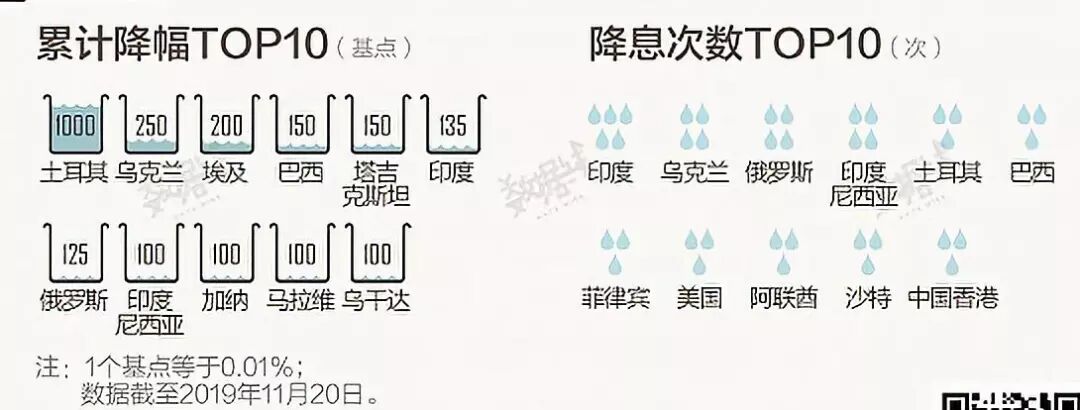 美联储当然算不上降息猛人,2019年,土耳其累计降息1000个基点,乌克兰降息250个基点,埃及降息200个基点……