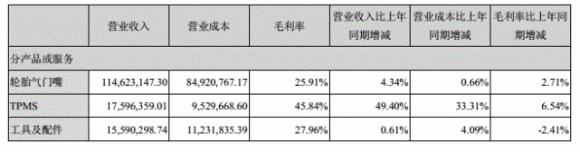 国内最大的厂家保隆科技,2019年中报实现“TPMS”的销售4.88亿,占其整体营收的32.72%,万通智控2019年中报显示在“TPMS”营收只有1759万元,收入占比只有11.9%。
