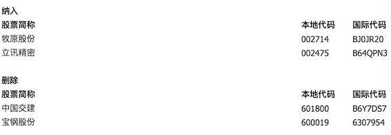 12月4日,富时中国A50指数“吐故纳新”,剔除了中国交建和宝钢股份,纳入了“苹果概念股”立讯精密和“猪价概念股”牧原股份。