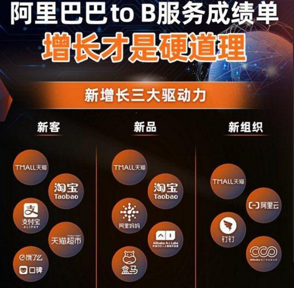在12月18日的,阿里巴巴ONE商业大会上,阿里巴巴集团副总裁、企业服务体系秘书长靖捷提出,帮助企业实现增长,改变增长的模式,是阿里商业操作系统要解决的“核心命题”。显然,阿里商业操作系统发布之初,即超越To B概念,祭出了11大商业要素这些To B的“能力单元”,而今,11个To B服务的“能力单元”进一步精炼化,被直接阐述为服务于企业增长的“三板斧”,也就是新品、新客和新组织。