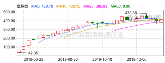 登陆创业板之后,半年时间内,卓胜微的累计涨幅高达709.43%。