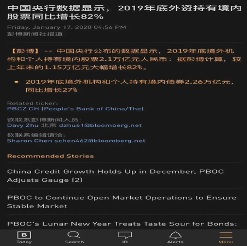 央行数据出来了:2019年底,外资持有境内股票同比增长82%!