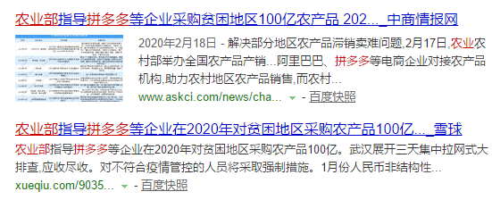 2月17日,农业农村部召开全国农产品产销对接会议,就如何进一步“抓生产、促流通、保供应”进行工作部署,会上,农业农村部的指导拼多多等平台针对贫困地区开展不低于100亿元的专项采购;同时,还将通过大力推动农资下行的方式保春耕、促生产。