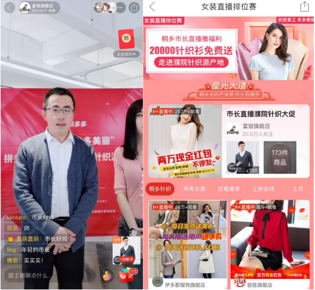 事实上,为了拉动“中国制造”更快地复工生产,拼多多推出了一系列“产业带复工线上大联播”活动。而目前,该项活动的合作方已经囊括了浙江、广东、山东这些主要经济大省的地方政府,各地主官纷纷走进拼多多直播间,推动各地逐步恢复制造业的内需动能。从数据来看,市县长直播已累计带动产业带商品订单数超过2000万,为企业新增粉丝超过190万,直接扶助了大量行业准一线新品牌。