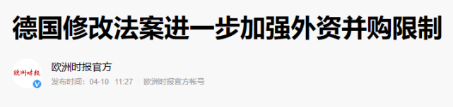 2,4月8日,德国政府内阁会议后,决定修改《对外经济法》,进一步加强外资对德国企业的投资与收并购限制。