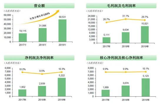 尽管并购经验丰富,但中国奥园的近些年的业绩表现,本质上仍然是聚焦主业获得的内生性增长,而不是像很多房企一样盲目跨界。从净利润率、毛利润率来看,中国奥园近几年的业绩非常稳定,毛利润率稳定在30%上下,净利润率和核心净利润率也均稳定在10%上下。