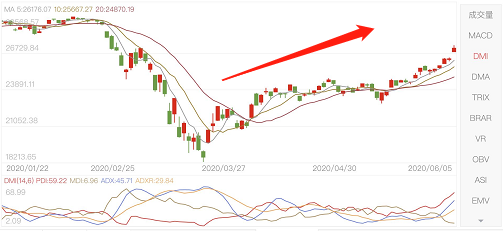 与纳指相比,道琼斯指数,虽然尚未创下历史新高,但涨幅丝毫不逊色,从3月份的底部算起,道指涨幅同样接近50%!