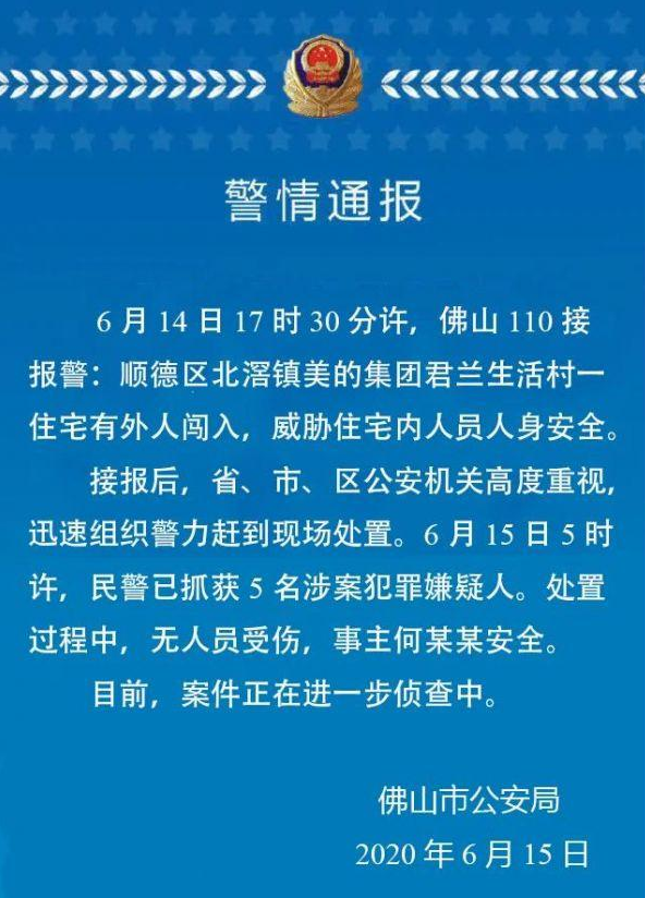 美的何老板被劫,事发地点是顺德北滘君兰国际高尔夫生活村,小区当然不错了,但是物业一般,是何老板旗下的小产业,美的物业。