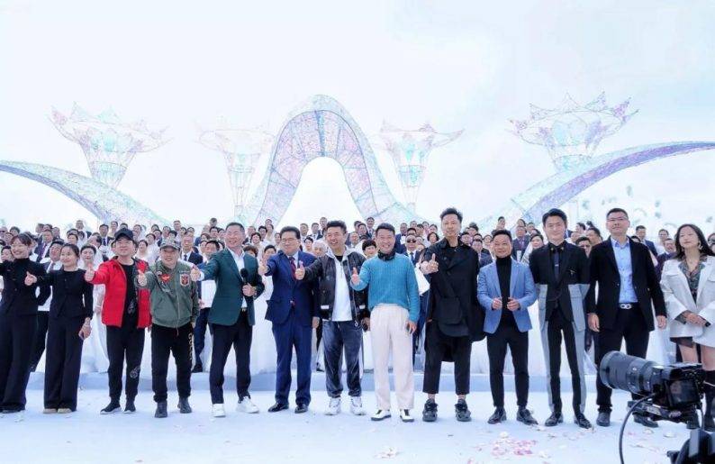 仪式区中央承载幸福翱翔的飞鸟装置高达9.5米、长达26米,现场还布置了七米高八吨重的万朵玫瑰花拼成的“最大玫瑰花熊”,成功挑战吉尼斯世界记录。