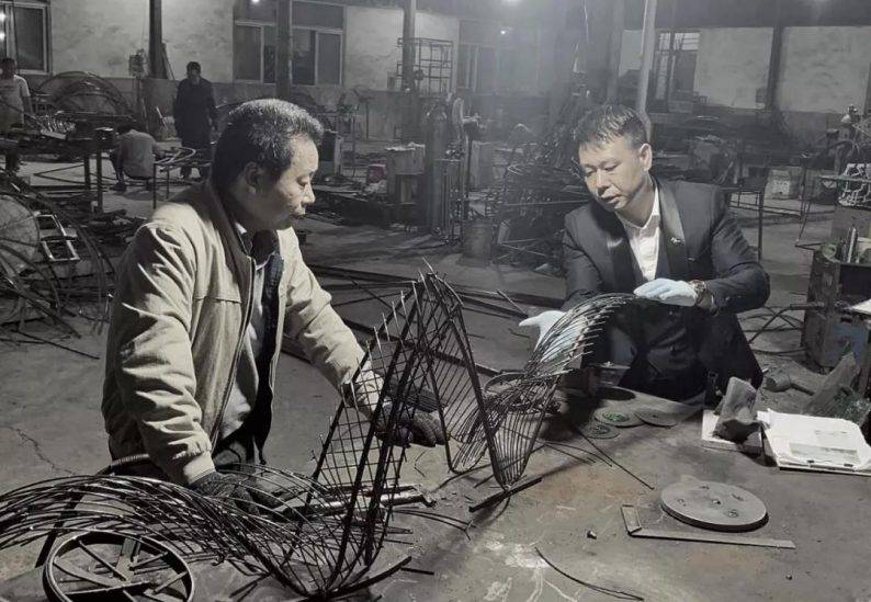 为了在现场达到最好的效果同时保证安全性,阿龙老师不眠不休地制作修改样品,多次飞往三亚活动现场确认场地尺寸和实地状况,同时也N次去装置制作工厂和师傅们交流探讨,最终这只飞鸟得以展翅高飞,以爱为名,翱翔天际。