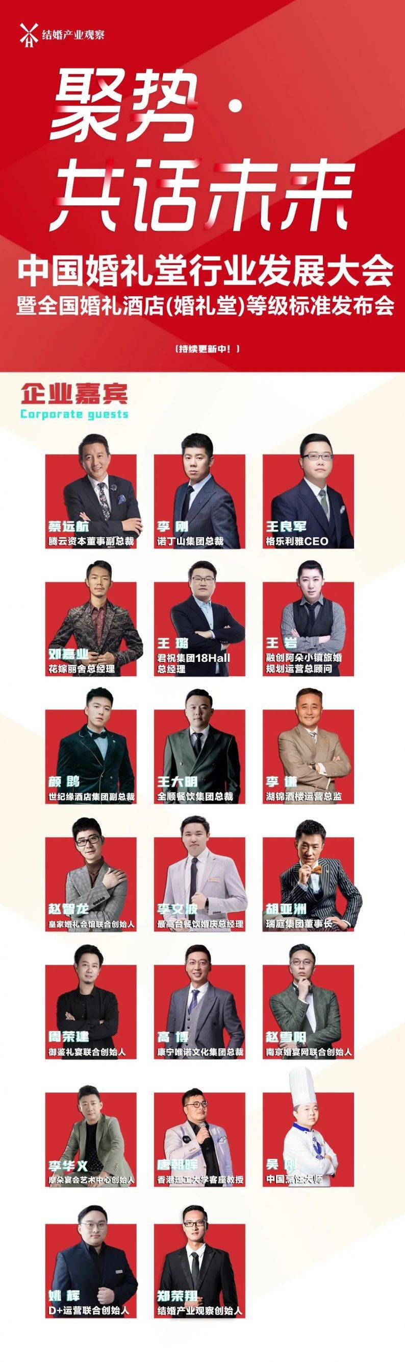 届时,将会有500+位来自全国的婚礼酒店(婚礼堂)老板、投资人和高管,还有文旅地产、产业基金等负责人聚势共话未来。